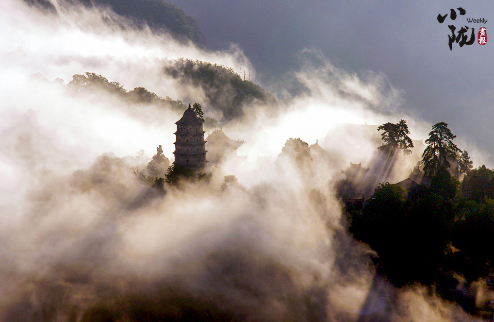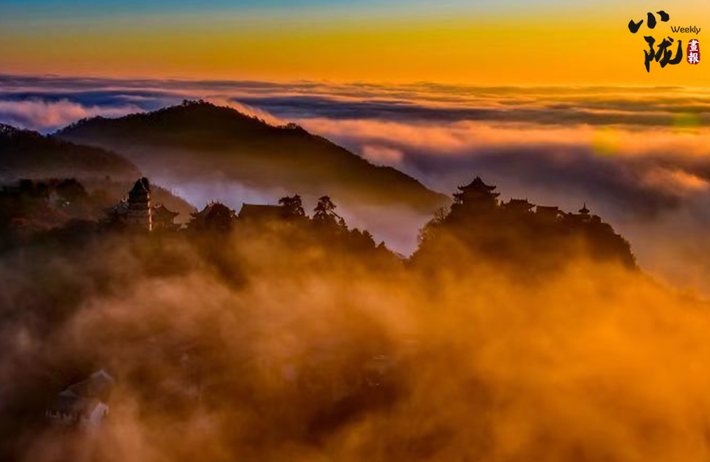 雪霽,登臨崆峒,望旭日東升,彩霞映紅山間,云霧隨風翻滾,像云彩縹緲,纏繞在山腰之間,彌漫開來,又如一條仙女的白絲帶……絢麗而有詩意。