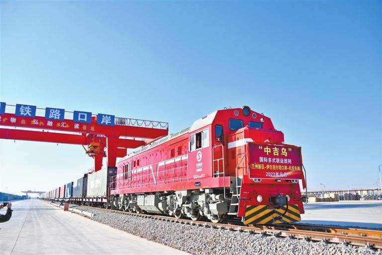 原標(biāo)題:蘭州新區(qū)2023年 首趟“中吉烏”公鐵聯(lián)運國際班列發(fā)車