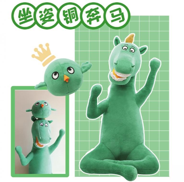 銅奔馬毛絨玩具有“一馬當(dāng)先銅奔馬”站姿款和“馬到成功銅奔馬”奔跑款兩種款式。兩款玩偶形象萌趣立體,表情俏皮生動(dòng),做工精致細(xì)膩,手感柔軟舒適有彈性,深得大家喜愛。它的創(chuàng)意原型來自甘肅省博物館的鎮(zhèn)館之寶——銅奔馬。銅奔馬出土于甘肅省武威市雷臺(tái)漢墓,距今已有2000多年的歷史,是中國旅游標(biāo)志物,也是古絲綢之路最具代表性的歷史文物載體。