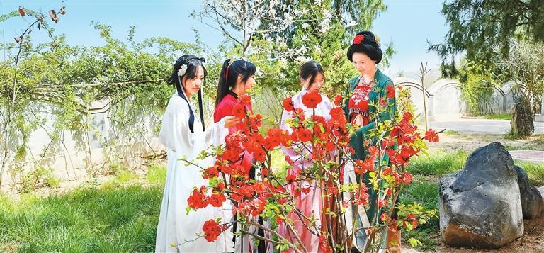 中國甘肅網4月10日訊 據(jù)蘭州晨報報道(奔流新聞·蘭州晨報記者王蘭芳)“百花錦繡,龍城花朝。”4月9日下午,由天水市玉泉觀大景區(qū)服務中心、天水市博物館、甘肅公航旅天水名城公司主辦的天水市第二屆漢服“花朝節(jié)”盛大啟幕。來自天水市的數(shù)百名漢服愛好者身著各色漢服,或云鬢斜簪輕拂團扇,或衣帶飄飄款款而來。那一刻,煙火人間與國潮美學完美融合,“同袍”們盛裝打扮,共同歡慶“花朝節(jié)”。