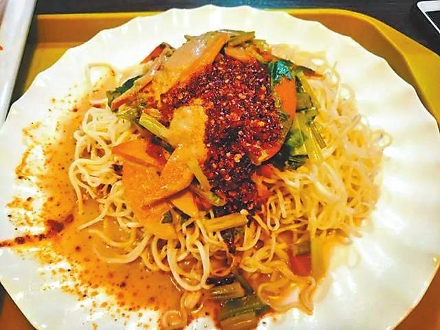 一碗標(biāo)準(zhǔn)的涼州涼面,必須是滿滿一碗,總要冒高點才夠分量。鹵汁分葷、素兩種。鹵子里有豬肉抑或牛肉片、土豆塊、豆腐、豆角、胡蘿卜、干白菜等,攪兩筷子,每一根面條都蘸上了鹵汁的感覺,看起來就非常有食欲。食客們埋頭呼嚕呼嚕開吃,相當(dāng)過癮。雖然面是涼的,但鹵是熱的,完全不需要擔(dān)心會燙嘴,面條很筋道,味道很濃郁!傳說左宗棠多年征戰(zhàn),戰(zhàn)事吃緊,為解決將士吃飯方便的問題,便想出冷面熱鹵的方法。吃涼州涼面,吃的是一種酸辣風(fēng)味,更是一種對小城難以割舍的情愫。