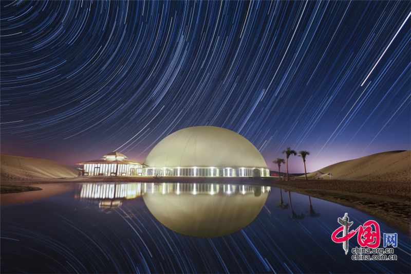 沙坡頭旅游區(qū)依托良好的生態(tài)資源,打造了國(guó)內(nèi)首個(gè)以沙漠觀星為主題打造的酒店——星星酒店,在蒼茫遼闊的沙漠之中,這座造型獨(dú)特的酒店仿佛星星一般,閃爍其中。