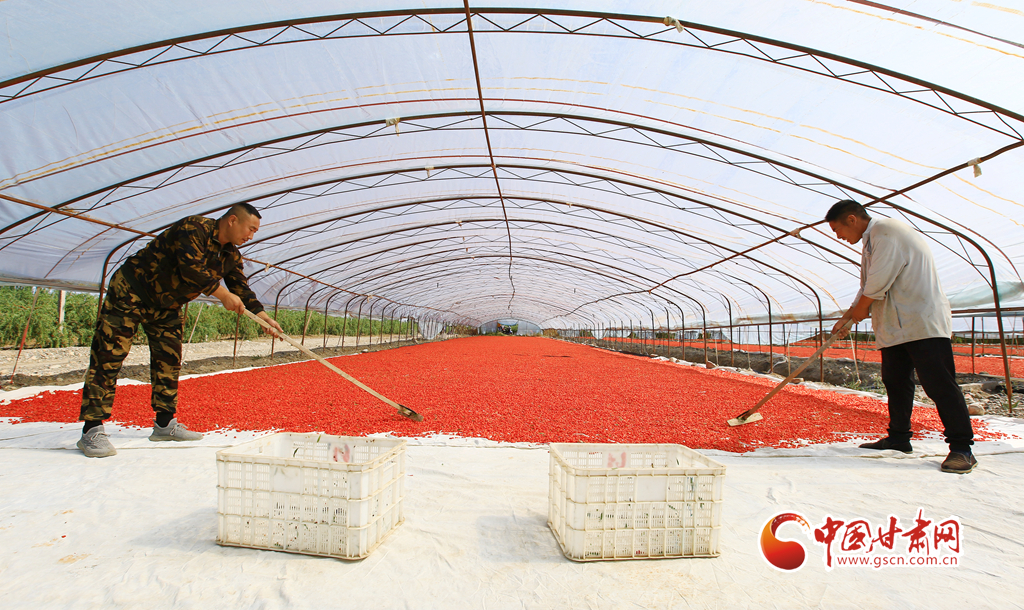 近日,嘉峪關(guān)市新城鎮(zhèn)一公司的1.89萬(wàn)畝頭茬枸杞迎來(lái)采收季,枸杞種植戶(hù)搶抓晴好天氣采摘、拉運(yùn)、晾曬枸杞,枸杞園內(nèi)外一派繁忙的豐收景象。