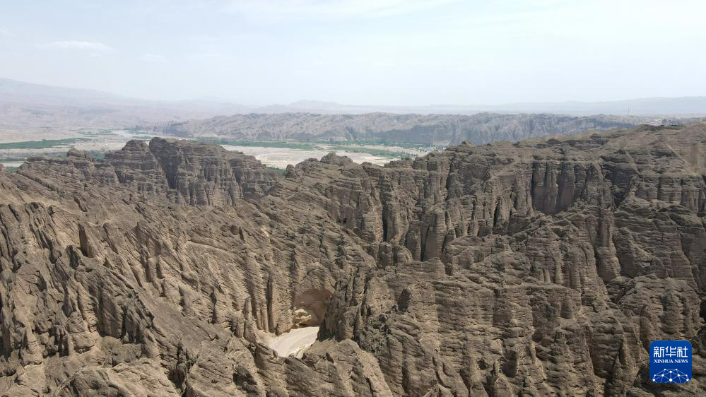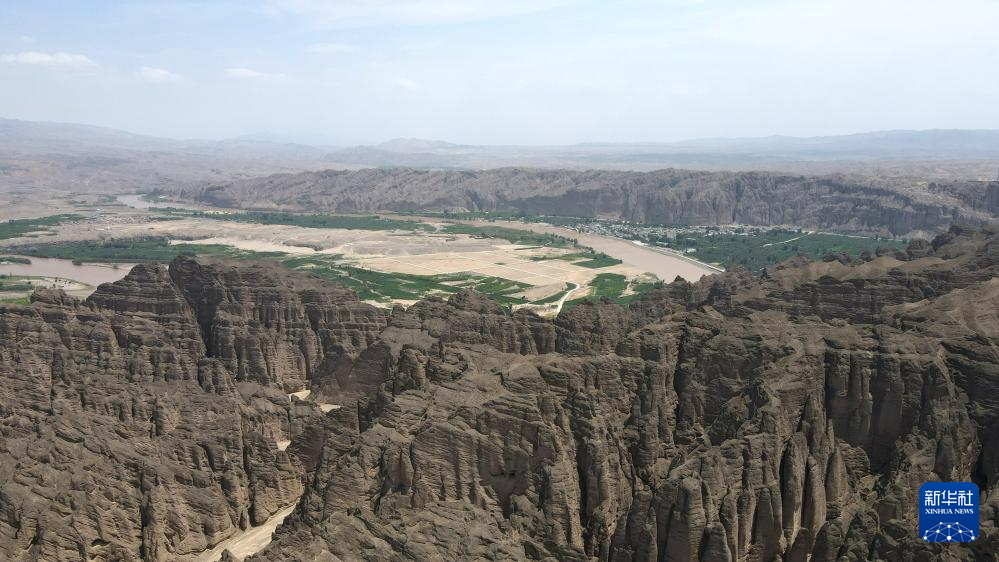 這是位于甘肅省白銀市景泰縣中泉鎮(zhèn)龍灣村的黃河石林景觀。黃河石林千峰競奇、峽谷蜿蜒,與黃河遙相呼應,形成山環(huán)水轉(zhuǎn)、動靜結(jié)合的自然奇觀(7月11日攝,無人機照片)。新華社記者 陳斌 攝