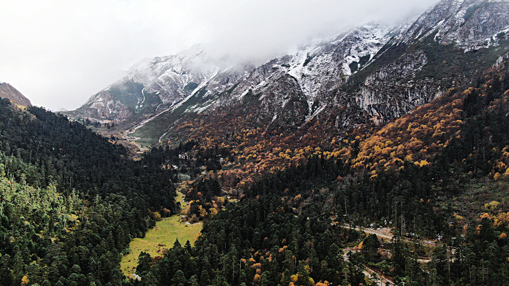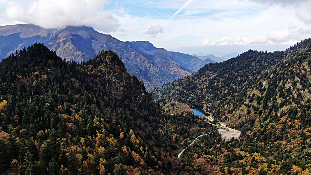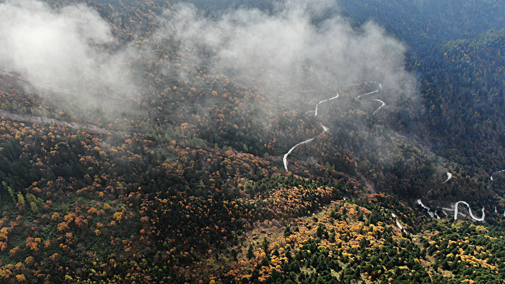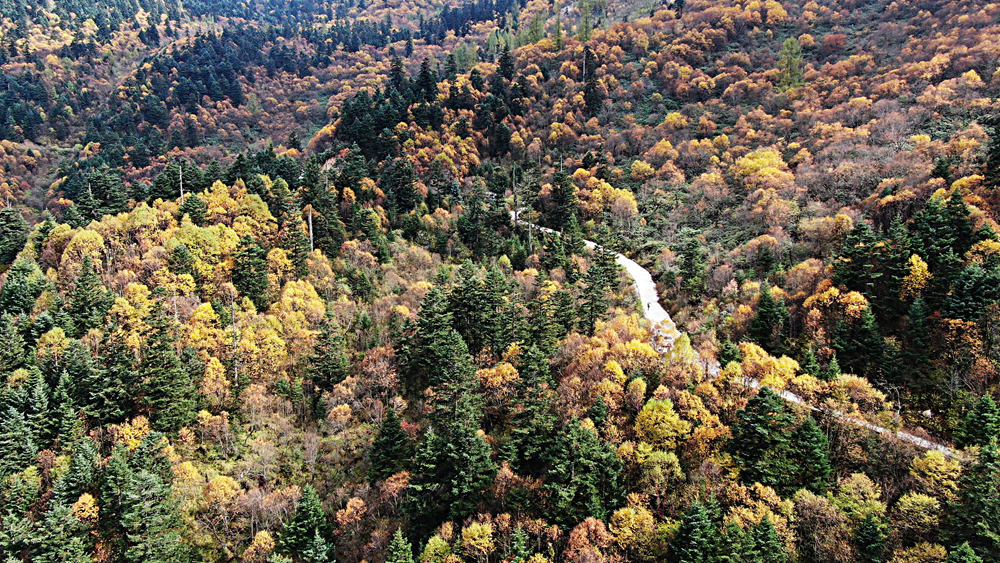 金秋時(shí)節(jié),甘肅省隴南市宕昌縣官鵝溝森林公園層林盡染,斑斕如畫,吸引了不少游客前來(lái)游玩。新華網(wǎng)發(fā)(劉輝 攝)