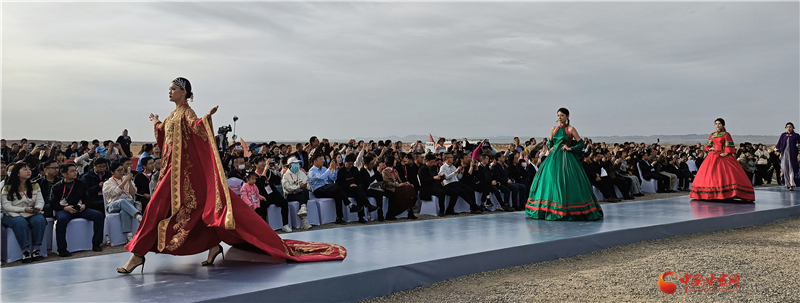 走秀的模特也表示,在玉門(mén)關(guān)下走秀很特別,行走時(shí)有清風(fēng)在面頰拂過(guò),特別有感覺(jué),大地舞臺(tái)厚重寬廣更有時(shí)尚感。