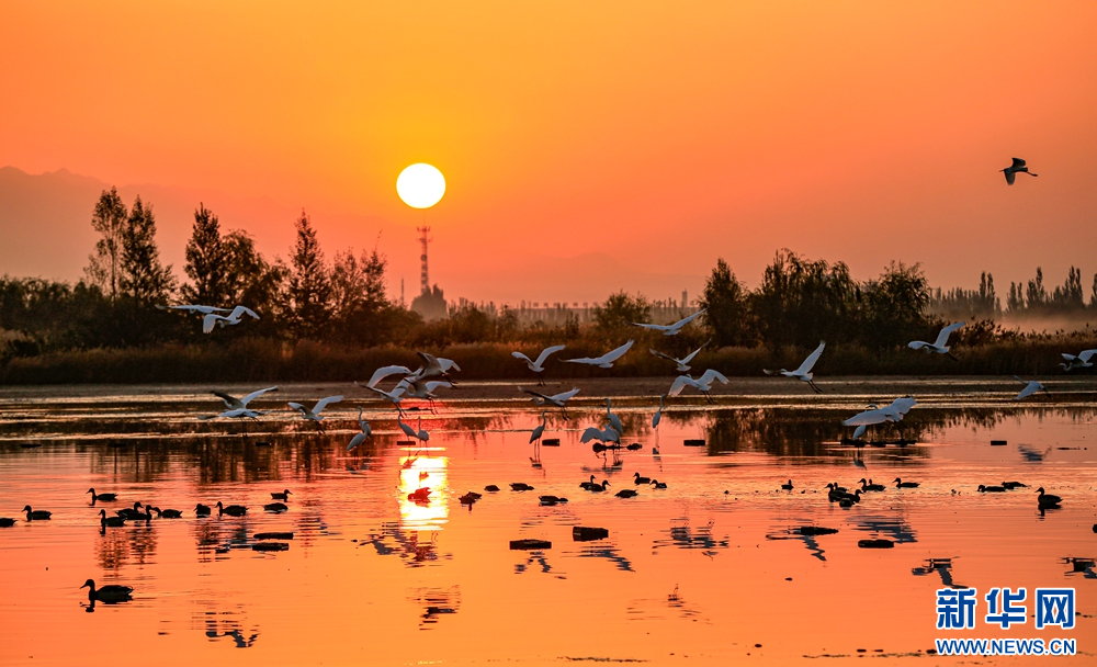 【大美甘肅】甘肅張掖:朝陽(yáng)伴鷺飛