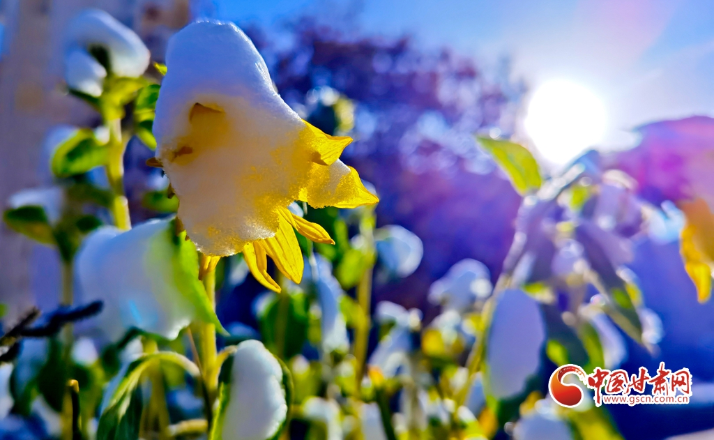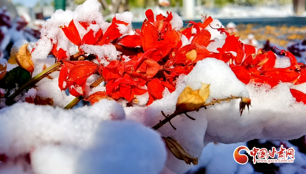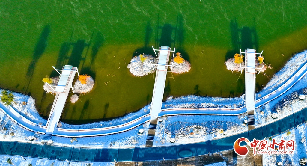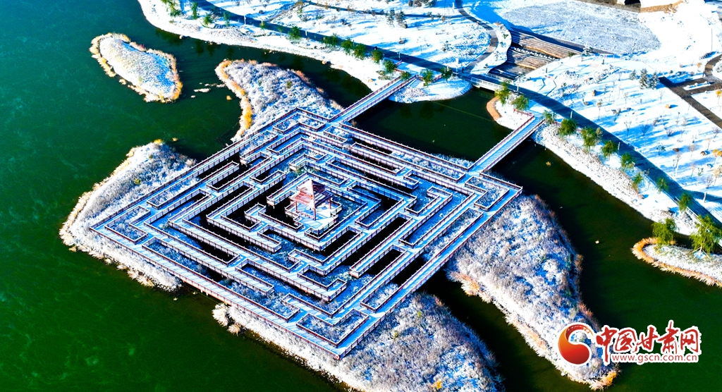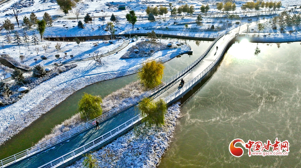 11月5日,受寒潮侵襲,甘肅省張掖市出現(xiàn)降溫降雪天氣。雪后初晴,張掖市中央文化公園內(nèi),銀裝素裹,景色迷人,宛若畫(huà)卷。