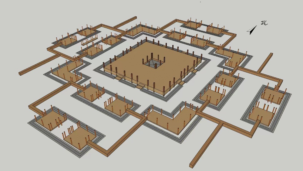 經(jīng)過近4年考古發(fā)掘工作,四角坪遺址“真容”漸顯。記者跟隨考古專家來到四角坪遺址,只見整個遺址坐落在被“削平”的山頂平臺之上,呈現(xiàn)出中心對稱的空間分布格局。