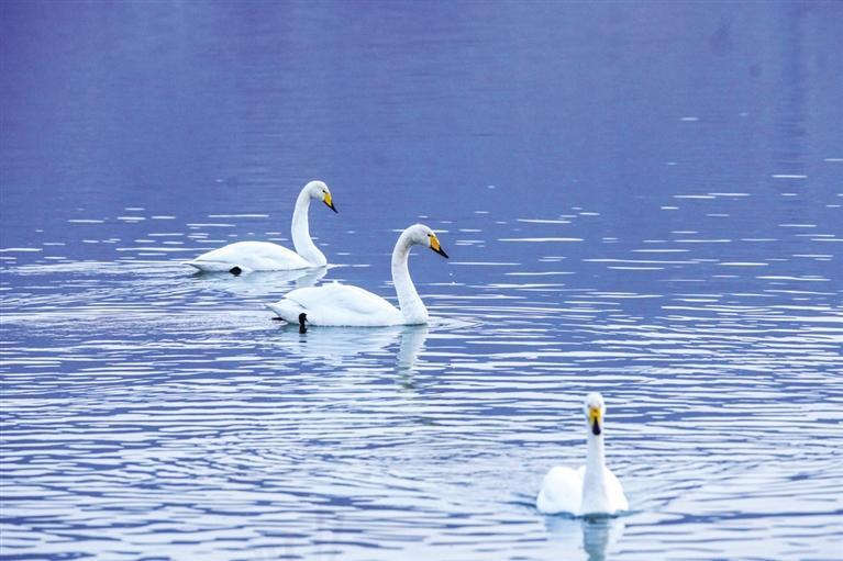 中國甘肅網(wǎng)12月4日訊 據(jù)蘭州晚報報道(記者 譚安麗/文 甘霖/圖)“生態(tài)好不好,鳥兒是晴雨表。”近日,西固區(qū)達川鎮(zhèn)三河口迎來了今年首批越冬大天鵝,吸引了眾多市民游客前往觀賞。記者從蘭州市林業(yè)局了解到,目前黃河蘭州段濕地分布和棲息的濕地鳥類約有68種,其中,國家I級重點保護鳥類3種(黑嘴鷗、黑鸛、白尾海雕),國家II級保護鳥類5種(大天鵝、鴛鴦、鹮嘴鷸、白腰杓鷸、鶚)。鵲鴨、綠頭鴨、斑嘴鴨、普通秋沙鴨和漁鷗等優(yōu)勢越冬水鳥種群數(shù)量較大,主要棲息地分布在沿線各灘涂地,棲息地質量較高。