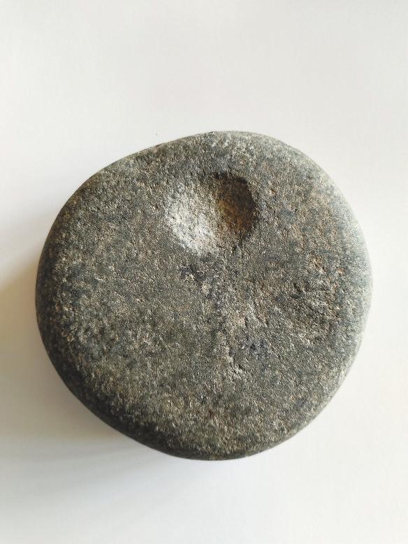 齊家文化的“盤(pán)狀石器”除“敲砸器”以外,還有一點(diǎn)比較特殊,其雙面分別琢制有日紋和月紋。目前所知,這類“盤(pán)狀石器”只在齊家文化遺存中出現(xiàn),是齊家文化石器的特有器型,石質(zhì)大多為礫石、河礫石。這種齊家文化特有的琢紋盤(pán)狀石器,學(xué)界尚未有統(tǒng)一命名,通常所見(jiàn)為:“圓形見(jiàn)手窩敲砸器”“刻符石”“刻符石器”。民間俗稱為:“練功石”“日月石”“星月石器”等。