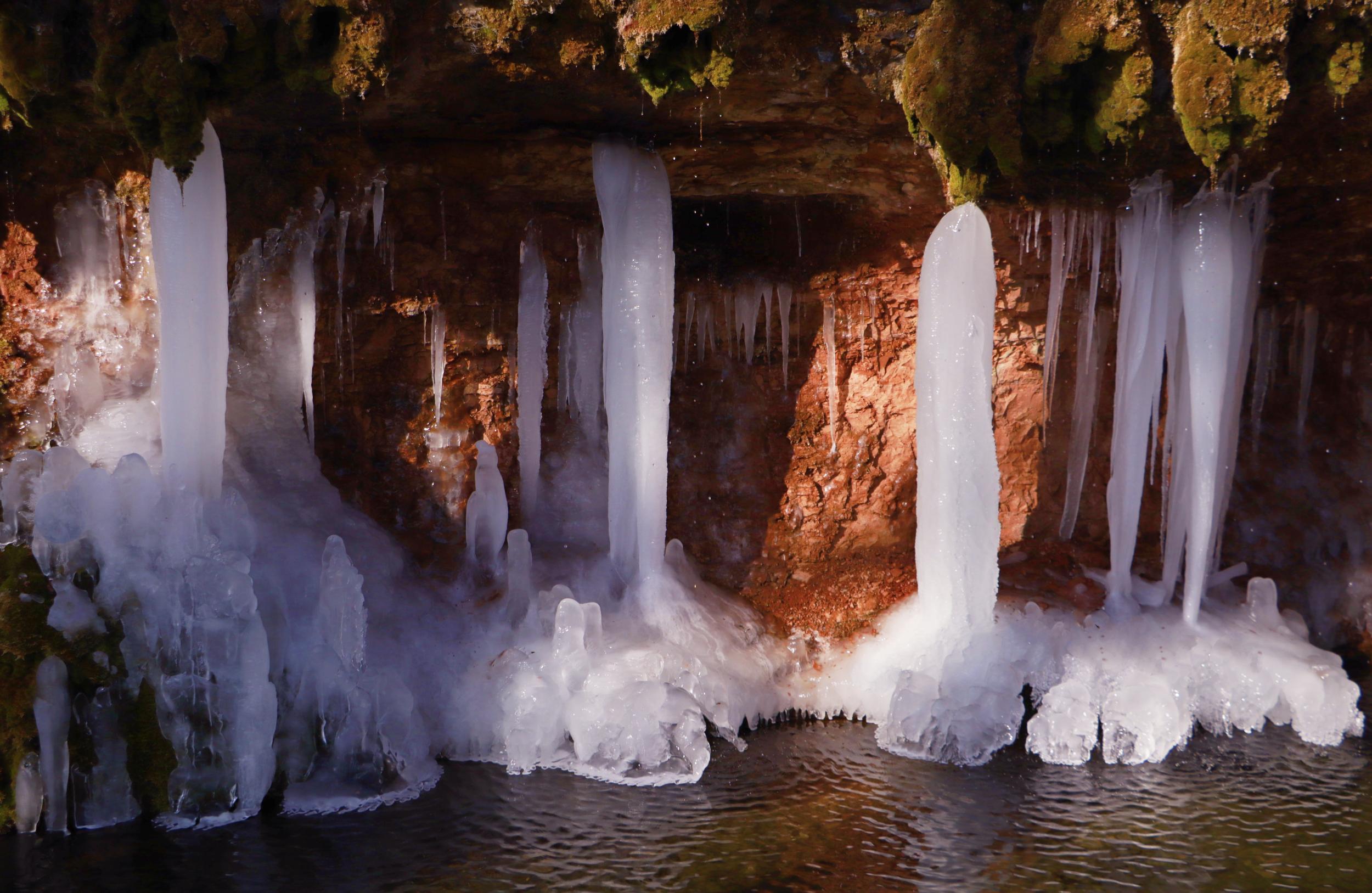 連日來,崇信縣持續(xù)降溫,AAAA級旅游景區(qū)龍泉寺泉水凝結成奇特秀麗的冰掛、冰柱、冰花美景,懸掛于山間,如萬把銀色寶劍垂吊,展現(xiàn)著冰肌雪骨的風姿,似盞盞熒光閃爍,在陽光的照耀下熠熠生輝、耀眼奪目,引來不少游客拍照觀賞。(崇信縣融媒體中心記者:孫淑霞 張百耀)