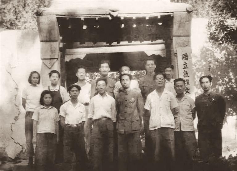 1950年,趙望云(前排右4)、張明坦(右5)和常書(shū)鴻(右3)等人合影。