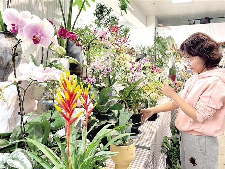 店主魏女士說,色彩鮮明、寓意吉祥的年宵花備受市民歡迎。店里有蝴蝶蘭、大花蕙蘭、富貴子、垂枝茉莉、仙客來、喜炮鳳梨、杜鵑花、北美冬青等,整個店鋪的花卉品種達200多種,基本上應有盡有,來店咨詢、購買的顧客逐日多了起來。