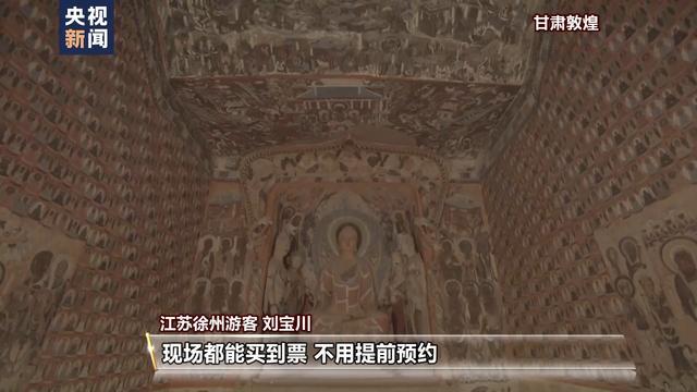 江蘇徐州游客 劉寶川:因為去年敦煌的旅游太熱了,駱駝都等紅綠燈,所以今年我想著冬天來可能人少一些?,F(xiàn)場都能買到票,不用提前預(yù)約。