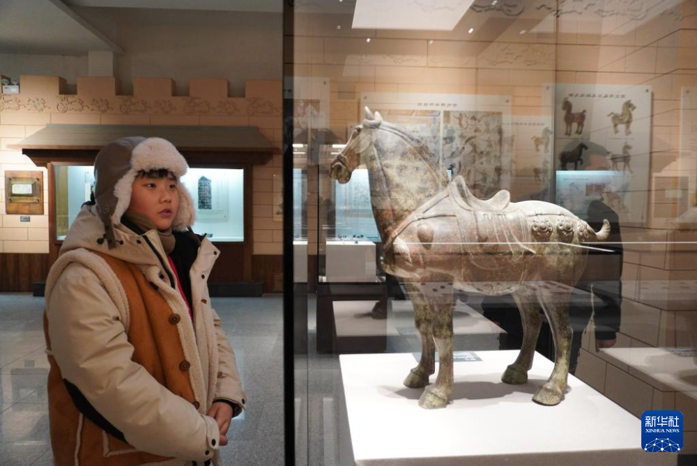 1月21日,在甘肅省敦煌市,參加研學活動的學生參觀陽關(guān)博物館。新華社記者 馬希平 攝