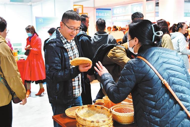 游客在展銷會(huì)上選購文創(chuàng)產(chǎn)品。新甘肅·甘肅日?qǐng)?bào)記者 高檣