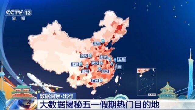 這個(gè)假期人們都將奔赴哪里?這是一張根據(jù)12306平臺(tái)4月30日的火車票預(yù)售數(shù)據(jù)繪制的目的地?zé)崃D,顏色越深表示到達(dá)的旅客數(shù)量越多。北京、廣州、上海、成都、武漢、西安、杭州、重慶、南京、長沙等中心城市依然是吸引旅客到達(dá)量最多的城市。