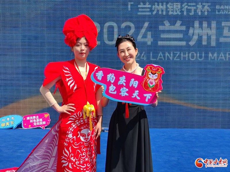 火紅的剪紙走秀,獨(dú)特的名俗文化吸引了眾多蘭州市民、“蘭馬”運(yùn)動員和志愿者,大家紛紛拍照留念。