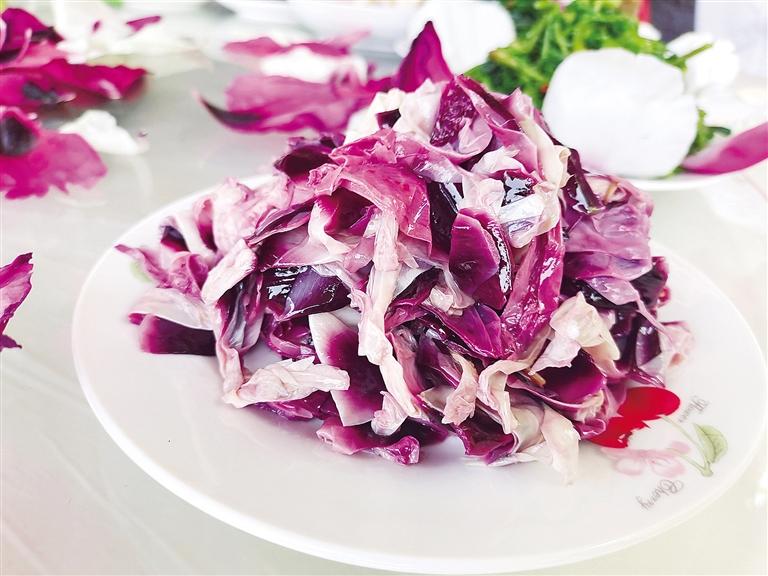花瓣落下可以吃,與吃榆錢一樣,原汁原味,因品種差別,有的略甜、有的微苦、有的則帶點清香。涼拌則不僅依舊保留花香,菜品也好看。