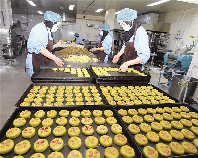 喝牡丹花茶,不能忽略牡丹花餅。蘊有淡雅花香、濃郁情懷的鮮花餅,經(jīng)過腌制花醬、皮面包酥、壓模成型、烤制等工藝精心制成,層層酥皮裹著綿香的牡丹花醬,吃來清甜不膩。