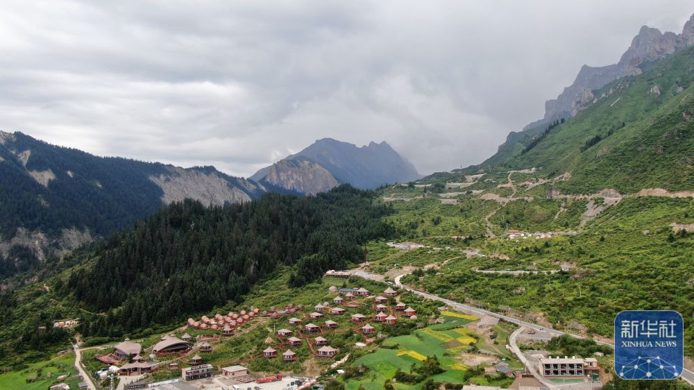 ↑ 這是6月27日拍攝的扎尕那一處帳篷營(yíng)地民宿(無人機(jī)照片)。新華社記者 陳斌 攝