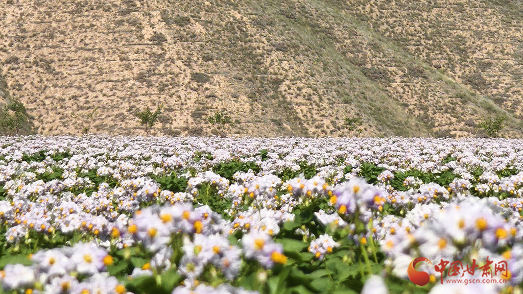 近日,蘭州新區(qū)中通道西側(cè)生態(tài)修復項目,千畝洋芋花開正盛,曾經(jīng)山溝縱橫的這里呈現(xiàn)出勃勃生機。
