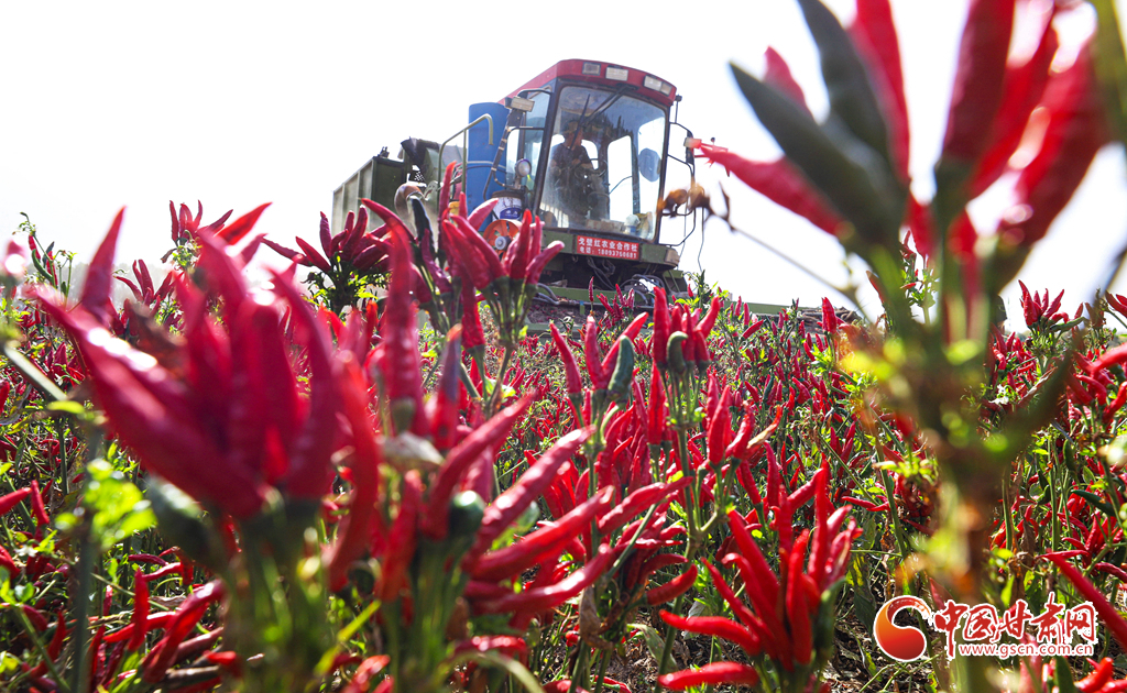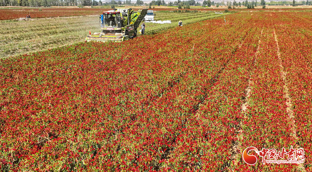 近日,臨澤縣平川鎮(zhèn)種植的3900多畝朝天椒進入采收期,朝天椒采收機馬達轟鳴,在田地里來回穿梭,快速采收。種植農(nóng)戶們把采收的朝天椒運往晾曬場,經(jīng)過分揀、晾曬、包裝后發(fā)往山東、河南、安徽、重慶、貴州等地訂單客戶手中。