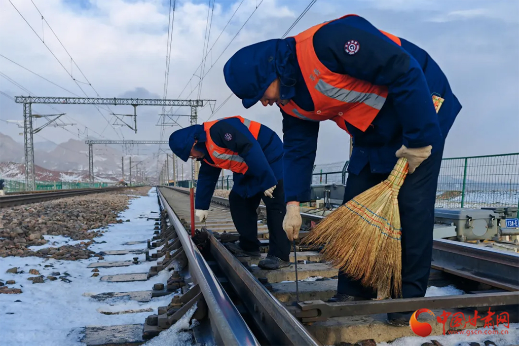 近日,受冷空氣影響,甘肅省古浪、山丹、永昌等地迎來降雪天氣。蘭州鐵路局各單位迅速啟動應(yīng)急預(yù)案,上下聯(lián)動、多措并舉迎戰(zhàn)風(fēng)雪,保障降雪天氣下運(yùn)輸安全暢通。(蘭州鐵路局供圖)