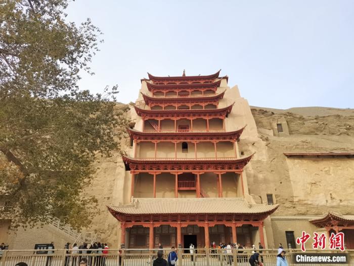人們來到敦煌莫高窟參觀。中新網記者 上官云 攝