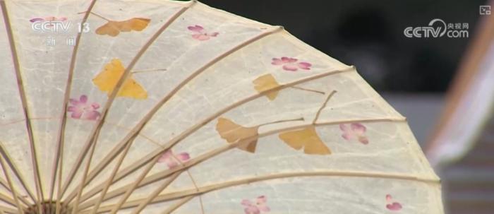 在最佳觀賞期來到村子里,游客朋友們還能看到和銀杏相關的非物質文化遺產(chǎn)。這是已經(jīng)傳承了300多年的騰沖傳統(tǒng)非遺——油紙傘。這把傘在制作階段,就將銀杏葉放入了宣紙之間。打起油紙傘,就仿佛銀杏葉落在了傘上,充滿意趣。
