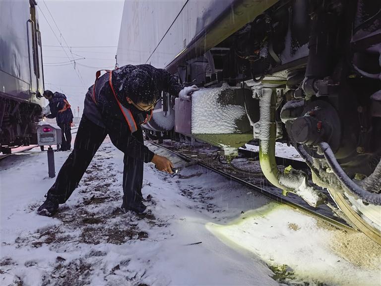 受今年入冬以來最強(qiáng)寒潮、雨雪天氣影響,11月23日20時(shí)開始,中國鐵路蘭州局集團(tuán)有限公司蘭州西機(jī)務(wù)段調(diào)車車間擔(dān)當(dāng)管內(nèi)的武威南、打柴溝等地區(qū)氣溫接近零下15℃,蘭新線蘭州北至武威南、蘭青線部分線路已普降中到大雪,調(diào)車車間干部職工以雪為令,精心組織、主動(dòng)應(yīng)對,采取有力措施最大限度降低不良天氣給行車安全帶來的影響,全力保證疆煤外運(yùn)人員供應(yīng),確保列車安全暢通。