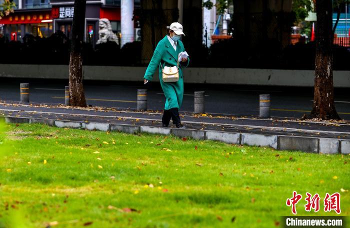 11月25日,市民在街頭出行。當日,武漢受寒潮天氣影響,氣溫下降明顯。武漢市氣象臺24日18時27分發(fā)布寒潮藍色預(yù)警信號,受較強冷空氣影響,預(yù)計24日至26日,武漢最低氣溫降幅達7℃~9℃。中新社記者 張暢 攝