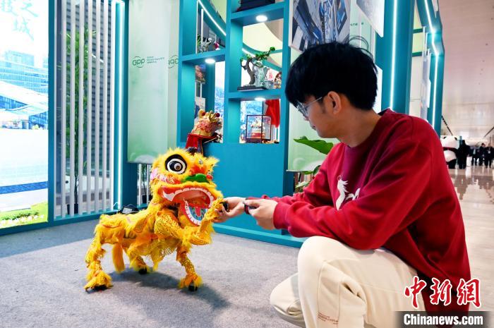 11月26日,四川成都,與會嘉賓和機(jī)器人獅子互動。中新社記者 安源 攝