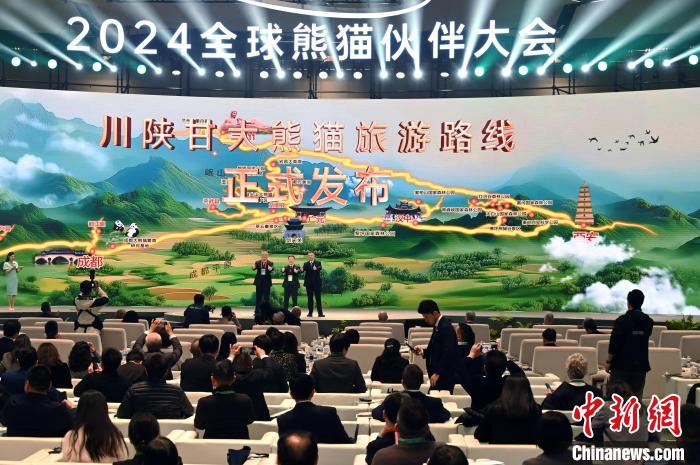 11月26日,四川成都,大會上的川陜甘大熊貓旅游線路發(fā)布現(xiàn)場。中新社記者 安源 攝