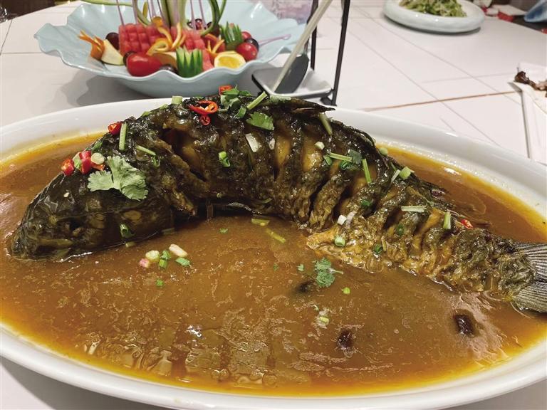 “黃河大鯉魚、蘭州糟肉、麻辣肉、老蘭州燴菜這些都是隴菜中的必點(diǎn)菜式!”董巖向記者介紹了店里的招牌菜:黃河宏豐鯉魚王,魚肉質(zhì)鮮嫩細(xì)膩、營(yíng)養(yǎng)豐富,在隴菜傳統(tǒng)烹飪技法中,紅燒黃河鯉魚堪稱經(jīng)典做法,搭配廚師精致的排盤,色澤紅亮的魚身與青蔥翠綠相互映襯,香氣撲鼻,令人垂涎欲滴。蘭州糟肉在隴菜中是一道極具特色的傳統(tǒng)名菜,每逢佳節(jié),它更是成為蘭州人家餐桌上必不可少的一道佳肴,承載著濃濃的節(jié)日氛圍和家的味道。精選肥瘦相間的五花肉,經(jīng)過刀工、糟鹵腌制、放入蒸鍋中蒸熟等一系列操作,肉質(zhì)變得軟爛,肥而不膩,糟香四溢。當(dāng)入口品嘗時(shí),那濃郁的糟香味瞬間在口中散開,與五花肉的醇厚口感完美搭配,相得益彰,讓人回味無窮。