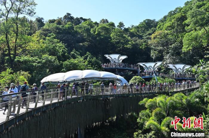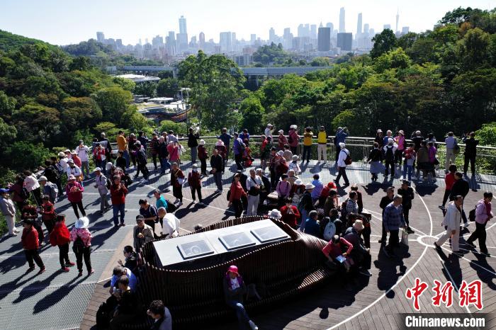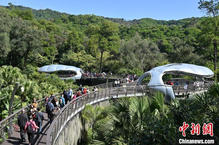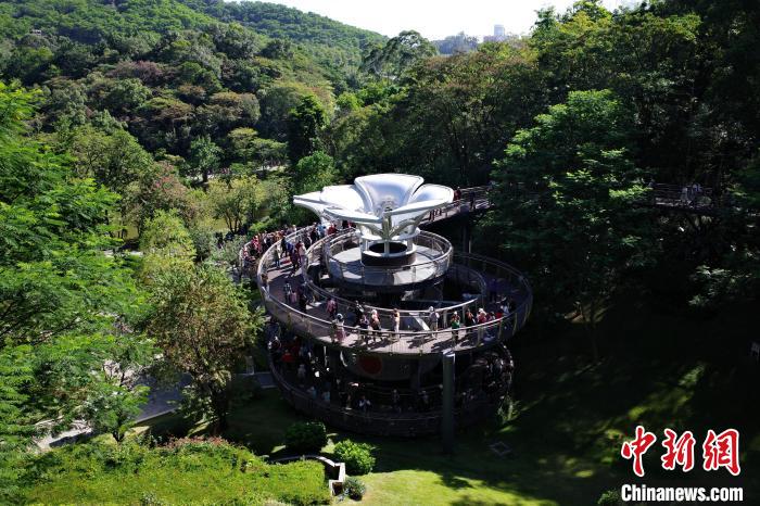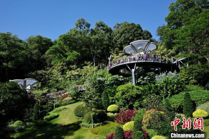 11月29日,廣東廣州,云蘿植物園正式開園,游客漫步在空中園林棧道“木棉道”。中新社記者 陳楚紅 攝