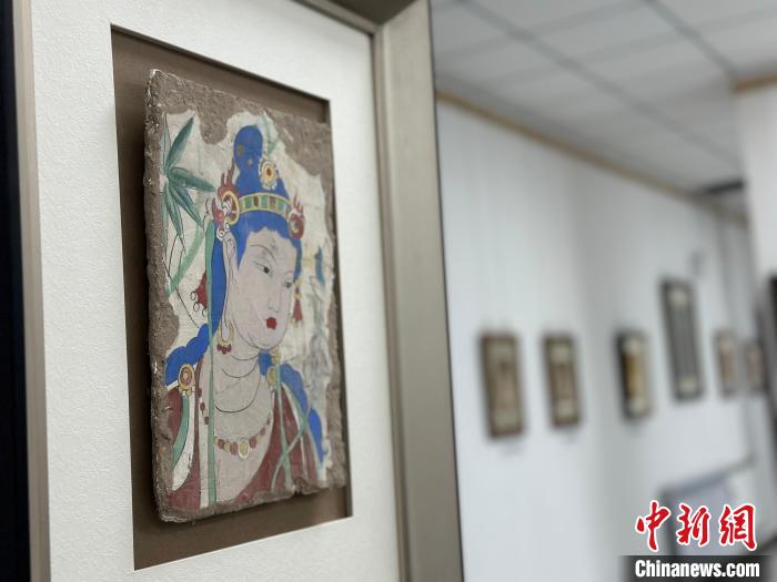 12月17日,由蘭州市七里河區(qū)委宣傳部、七里河區(qū)文體旅局聯(lián)合舉辦的“大漠孤陽(yáng)映彩霞 敦煌神韻美如畫”新時(shí)代文明實(shí)踐主題活動(dòng)暨敦煌巖彩畫書畫藝術(shù)展拉開帷幕。圖為展出的敦煌莫高窟壁畫題材巖彩畫。楊娜 攝