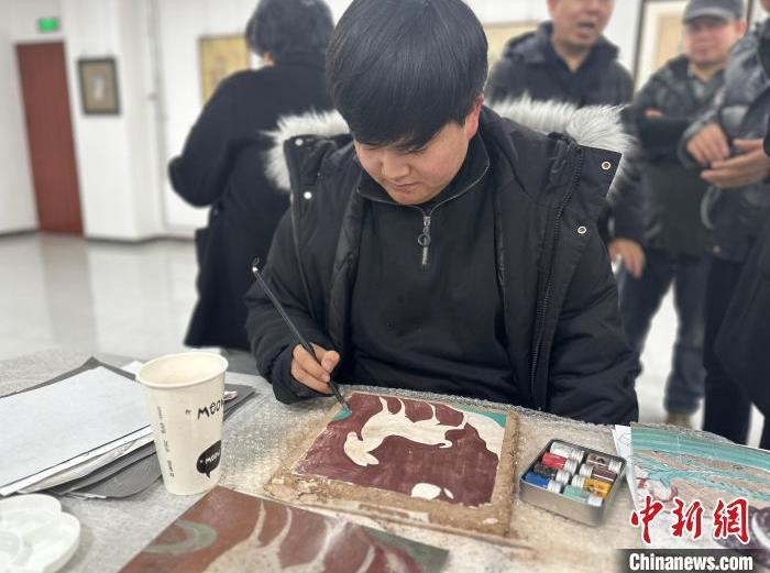 12月17日,由蘭州市七里河區(qū)委宣傳部、七里河區(qū)文體旅局聯(lián)合舉辦的“大漠孤陽(yáng)映彩霞 敦煌神韻美如畫”新時(shí)代文明實(shí)踐主題活動(dòng)暨敦煌巖彩畫書畫藝術(shù)展拉開帷幕。圖為青年畫師現(xiàn)場(chǎng)繪畫。楊娜 攝
