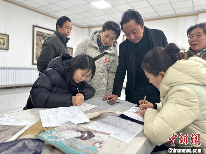 12月17日,由蘭州市七里河區(qū)委宣傳部、七里河區(qū)文體旅局聯(lián)合舉辦的“大漠孤陽(yáng)映彩霞 敦煌神韻美如畫”新時(shí)代文明實(shí)踐主題活動(dòng)暨敦煌巖彩畫書畫藝術(shù)展拉開帷幕。圖為繪畫愛好者現(xiàn)場(chǎng)學(xué)習(xí)繪制巖彩畫。楊娜 攝