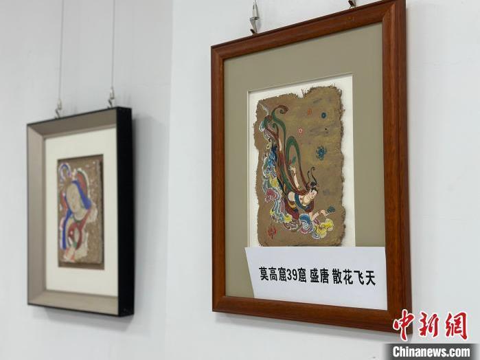 12月17日,由蘭州市七里河區(qū)委宣傳部、七里河區(qū)文體旅局聯(lián)合舉辦的“大漠孤陽(yáng)映彩霞 敦煌神韻美如畫”新時(shí)代文明實(shí)踐主題活動(dòng)暨敦煌巖彩畫書畫藝術(shù)展拉開帷幕。圖為展出的巖彩畫。楊娜 攝