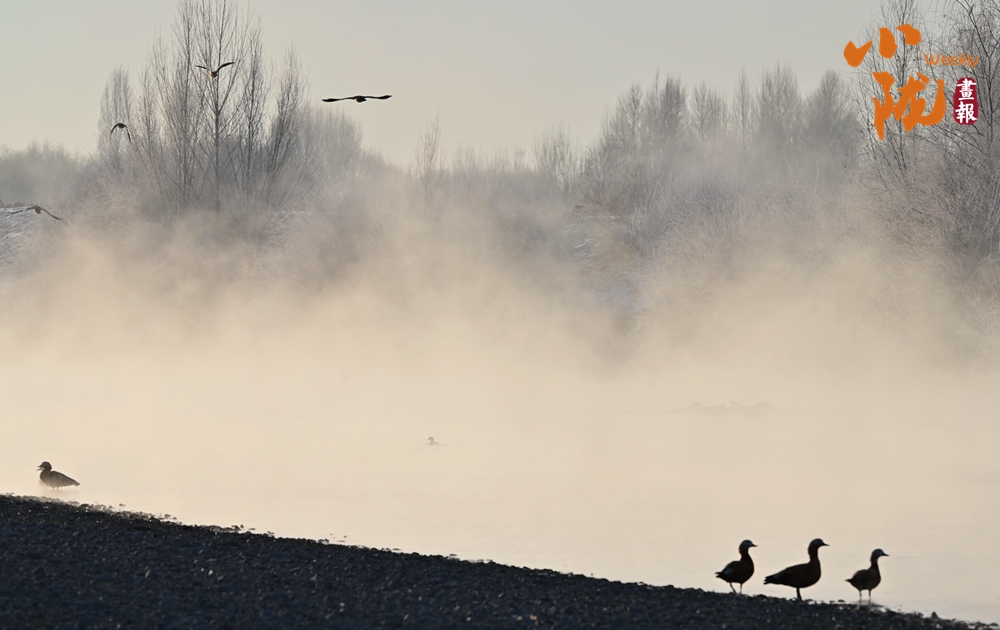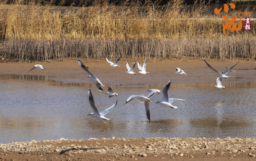 成群的候鳥在淺灘上悠閑地覓食、嬉戲,顯得格外的艷麗,為臨澤的冬日增添了一抹靈動與和諧的氣息。