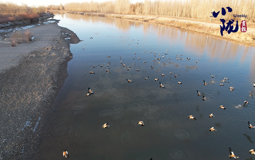 萬物復(fù)蘇,臨澤黑河濕地白天鵝、赤麻鴨等棲息覓食,構(gòu)成了一幅和諧的生態(tài)美景。