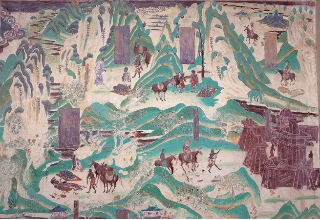 莫高窟第217窟青綠山水。新華社發(fā)(敦煌研究院供圖)