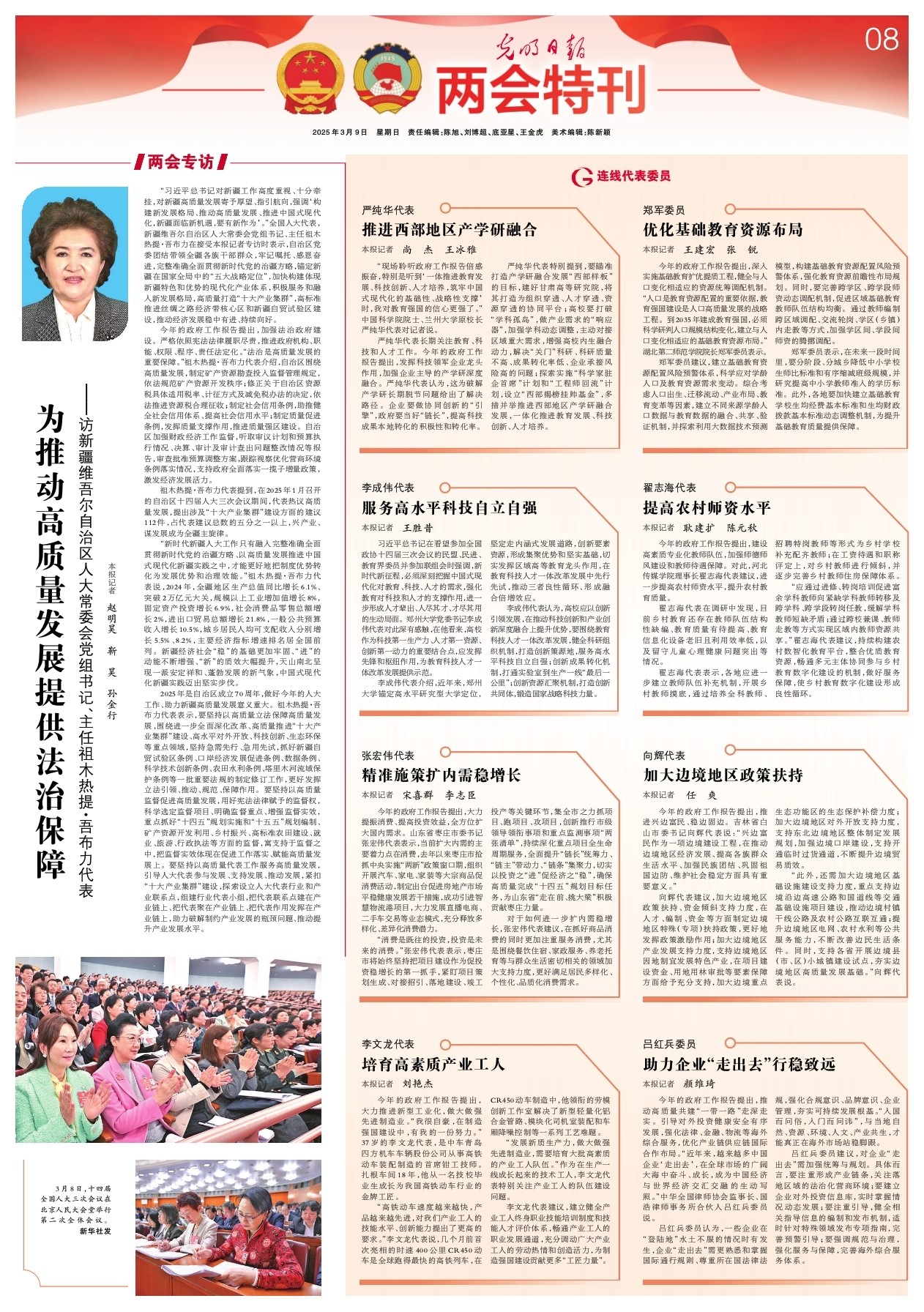 “現(xiàn)場聆聽政府工作報告倍感振奮,特別是聽到‘一體推進教育發(fā)展、科技創(chuàng)新、人才培養(yǎng),筑牢中國式現(xiàn)代化的基礎(chǔ)性、戰(zhàn)略性支撐’時,我對教育強國的信心更強了。”中國科學院院士、蘭州大學原校長嚴純?nèi)A代表對記者說。