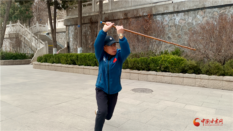 “鞭桿自古就有,甘肅天水、隴南、定西一帶也有習(xí)武者,我父親總結(jié)了蘭州纏海纏桿體系,為鞭桿百花園再添新力量。”王建國(guó)介紹蘭州纏海鞭桿體系。