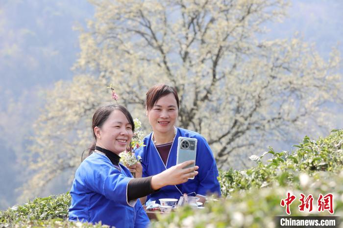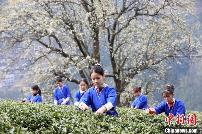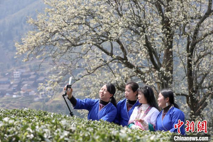 3月16日,廣西三江侗族自治縣八江鎮(zhèn)歸令村六更屯種植的千樹梨花迎春綻放,與青翠茶園、特色民居相映成趣,構(gòu)成一幅如詩如畫的春日畫卷。當(dāng)?shù)卮迕窦坝慰图娂娗皝聿刹栀p花、“打卡”拍照,享受春日美好時光。圖為村民在采春茶。龔普康 攝
