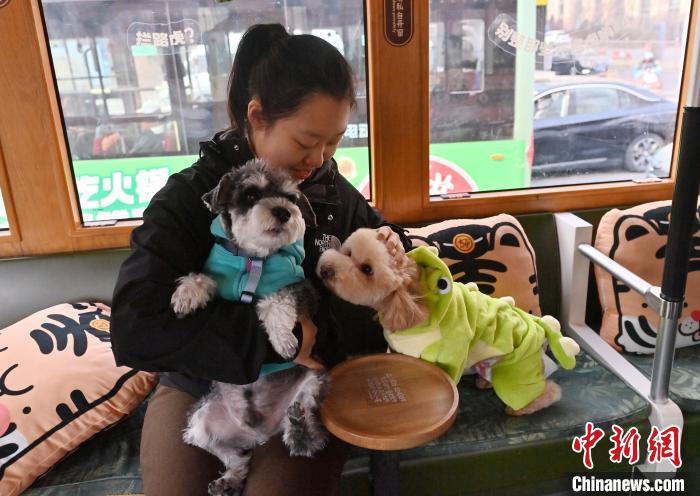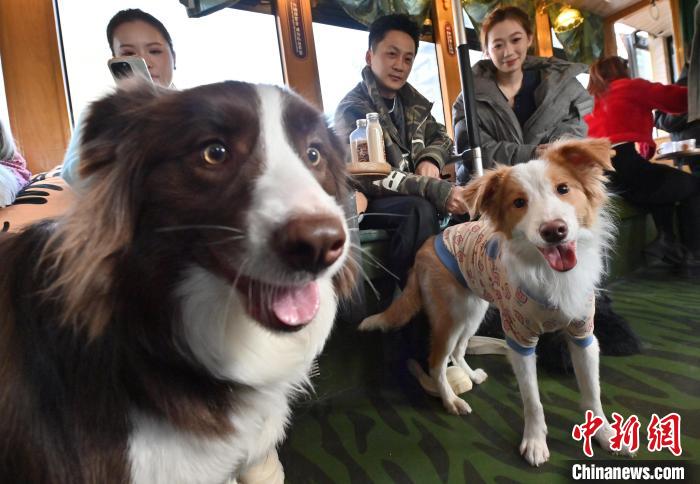 3月16日,吉林長春,寵物和主人在車廂內(nèi)看風景。近日,長春54路文旅東北虎專列專為寵物主人們推出攜帶寵物乘車的專屬服務,寵物主人可在特定時間帶領寵物乘車。車廂內(nèi),萌寵們或坐或臥,與主人親密互動,仿佛在進行一場別開生面的派對。中新社記者 張瑤 攝