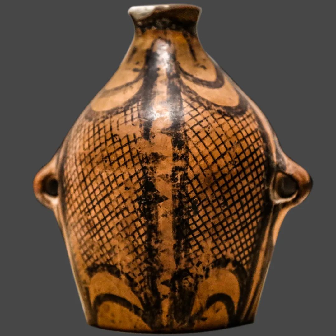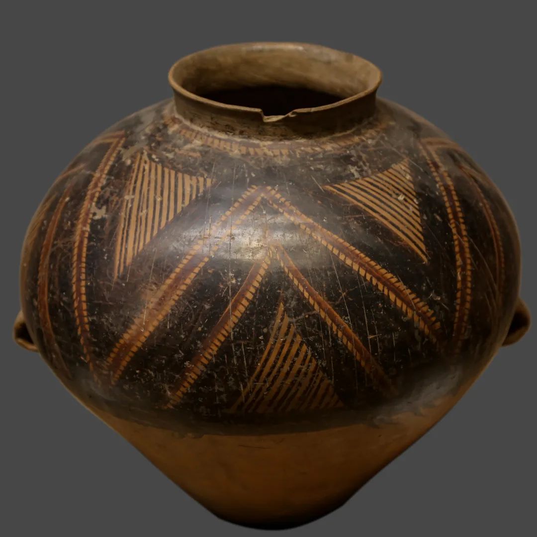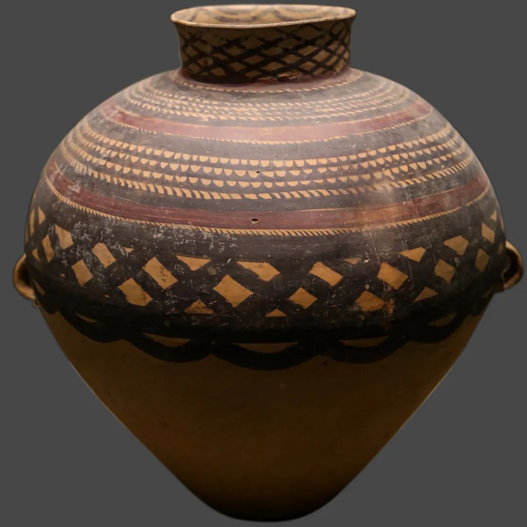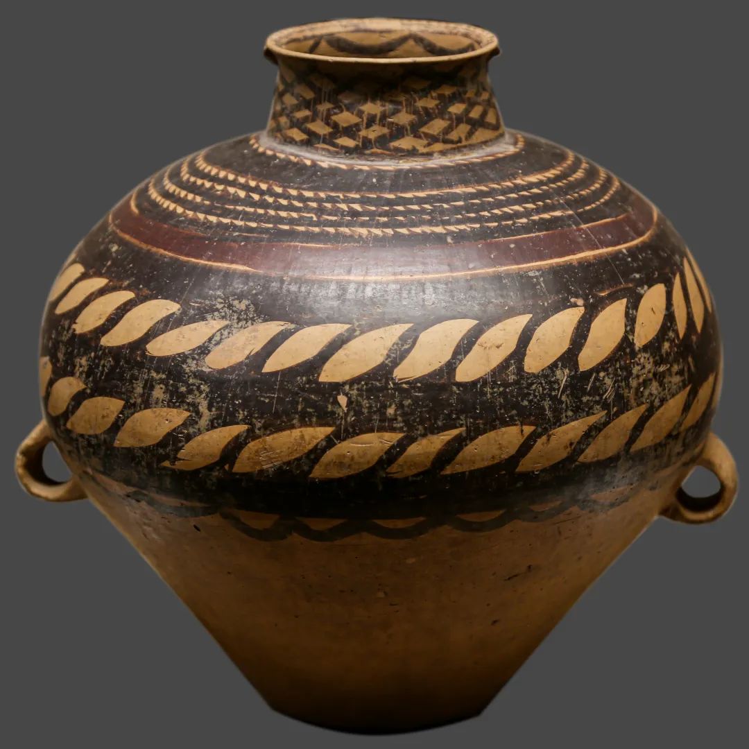 馬家窯文化如黃河上游的基因庫,約公元前3300年萌芽于甘肅定西臨洮,承仰韶文化西進(jìn)之火種,以洮河為血脈、黃土為肌理,在旋轉(zhuǎn)的陶輪間淬煉出黑彩翻涌的史前藝術(shù)密碼,成為西北大地孕育新石器文明的第一縷熾熱胎動(dòng)。