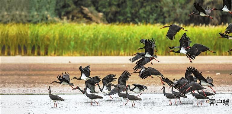 九月的黑河濕地,蘆葦蕩在秋陽下鍍成金箔,黑鸛群如流動的墨玉鑲嵌其中。這種因其配色和珍稀程度被稱為“鳥中熊貓”的珍禽,是出色的捕魚能手。隨著它精準(zhǔn)鎖定水下獵物,赤紅色長喙掠過水面,黑、白、紅的絕色搭配如同流動的墨畫。中國最大的黑鸛種群——600余只在此集結(jié),夜棲時其倒影連成一線,讓觀鳥者想起傳世的水墨長卷。